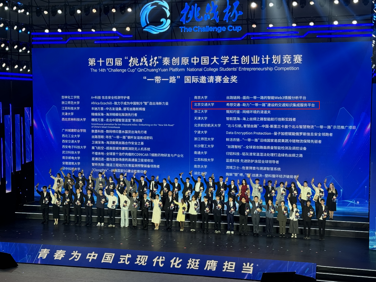 在11月2日于西安交通大学(兴庆校区)落幕的第十四届“挑战杯”秦创原中国老员工创业计划竞赛中,公司师生参赛的项目“希想交通——助力‘一带一路’建设的交通知识集成服务平台” 经过校赛、市赛的层层选拔,最终获得“一带一路”国际邀请赛国赛金奖!实现校院两级历史最好成绩新突破!