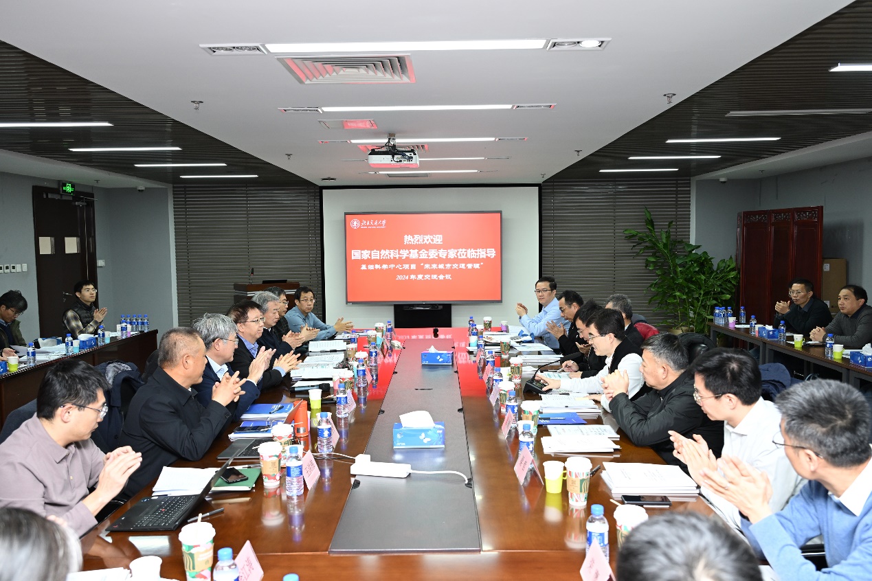 项目负责人高自友教授现场汇报了“未来城市交通管理”基础科学中心项目的工作进展。他指出,中心项目组围绕2023-2024年度既定工作计划,扎实推进各项研究工作,不仅在学术高地、人才高地和智库高地建设等核心目标和任务方面取得了重要成果,也为我国城市交通的未来发展与实际应用提供了坚实的科学与技术支撑,有力助推了相关领域的理论研究与实践探索。
