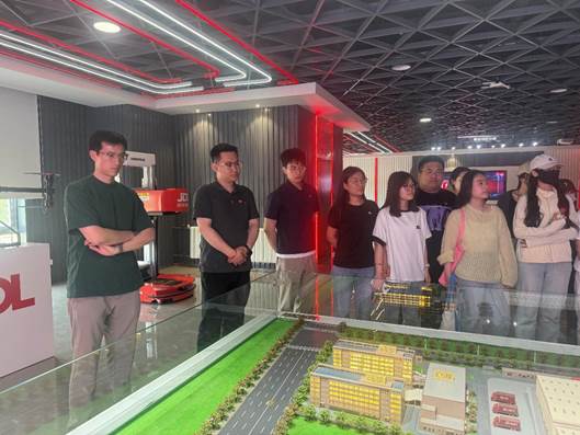京东物流科技资深架构师陈亚迷引导公司师生实地参观智能仓储作业区。在5G技术展区,师生重点了解了CV监测平台对园区安全的实时动态管控,以及基于边缘计算的智能视觉和集群智能机器人应用方案。园区工作人员现场演示了拣货机器人矩阵的协同作业流程,通过自动化分拣系统与无人调度算法,实现货品从入库到出库的全链路效率提升。